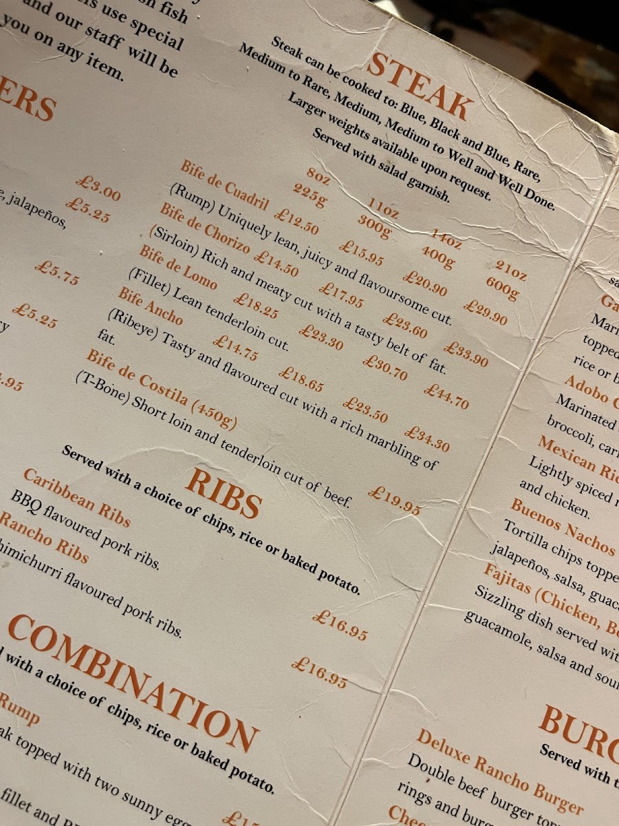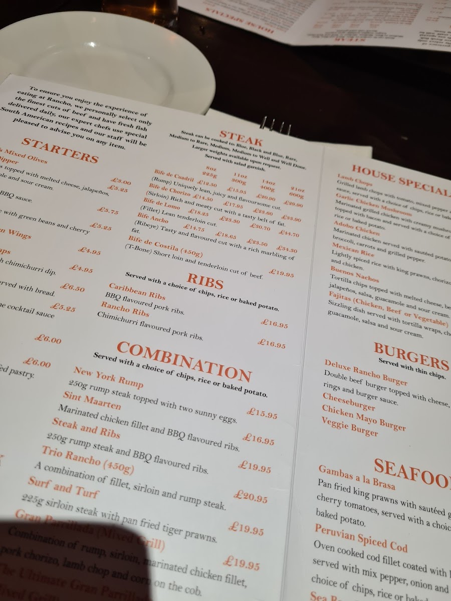 Welcome to Rancho Steak, a culinary gem located at 61 Osborne Rd, Southsea, Portsmouth. This vibrant eatery specializes in mouth-watering steaks and ribs, crafting an unforgettable dining experience. The menu shines with standout options like Caribbean Ribs and Rancho Ribs, celebrated for their rich flavors. Burgers are also a highlight, featuring the indulgent Deluxe Rancho Burger and a selection of both chicken and veggie options to cater to every palate.